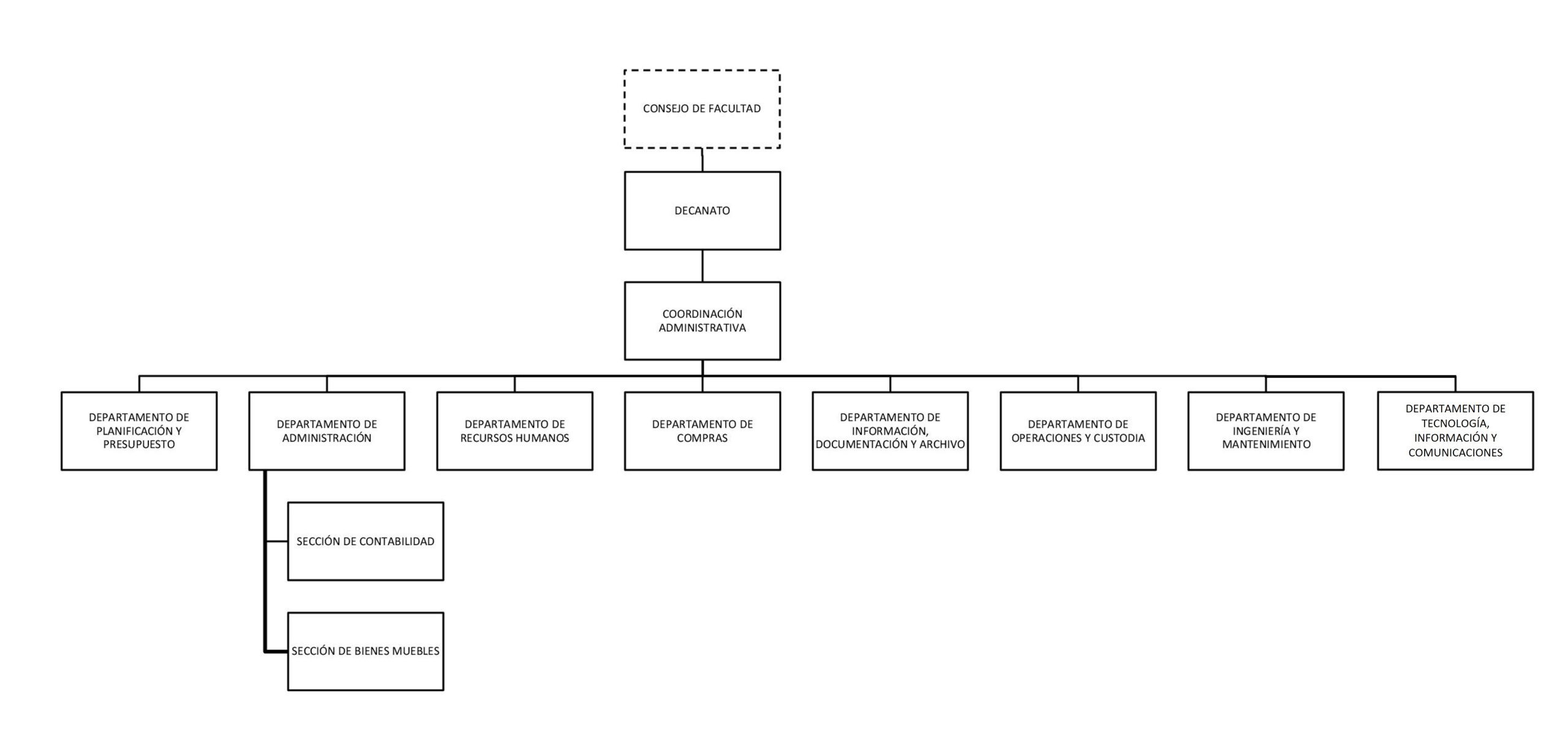 La Coordinación Administrativa se encuentra estructuralmente representada por seis (06) departamentos operativos de servicio, los cuales realizan diversas actividades que facilitan el cumplimiento de la misión de la Facultad:
